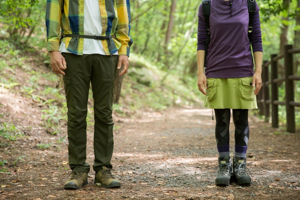 虫刺され防止の為、長袖・長ズボンにスニーカー、リュックで!靴は歩きやすく履き慣れたスニーカーがGood!また、朝晩の寒暖差が大きいこの季節は、ナイロンジャケットやマウンテンパーカーなどの羽織物を必ず用意しましょう。天気の急変に備えて雨具も持っていきましょう。ハイキングは長時間歩く為、体温調整をしやすい重ね着が基本です。中に着るTシャツは速乾性やストレッチ性のある素材を選ぶようにしましょう。