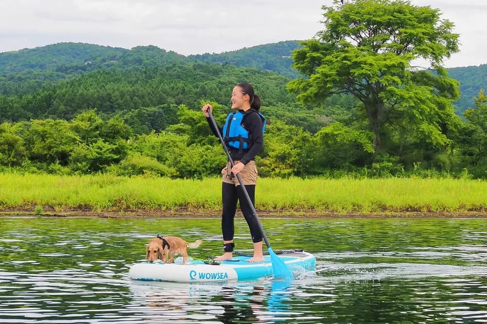 富士観光トラベルでは、ワンちゃんと一緒にSUPやカヌーが楽しめる水上アクティビティプランを発売しております。