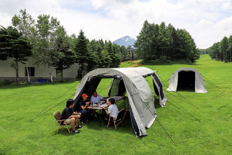 夏はサマーゲレンデやマウンテンバイクなど様々なアウトドアアクティビティが楽しめる富士山のゲレンデふじてんリゾート。ふじてんリゾートでは、富士山を眺めながらデイキャンプスタイルの本格アメリカンBBQが可能。BBQグリルは、厚切り肉、丸鶏も簡単に調理できるチャーブロイルツーバーナーガスグリル(Char-Broil)。食材は持込も可能なほか、富士桜ポークや信玄鶏など地元ならではの食材セットも。大自然の中で、ゆったりテントでのんびりバーベキューが楽しめます。