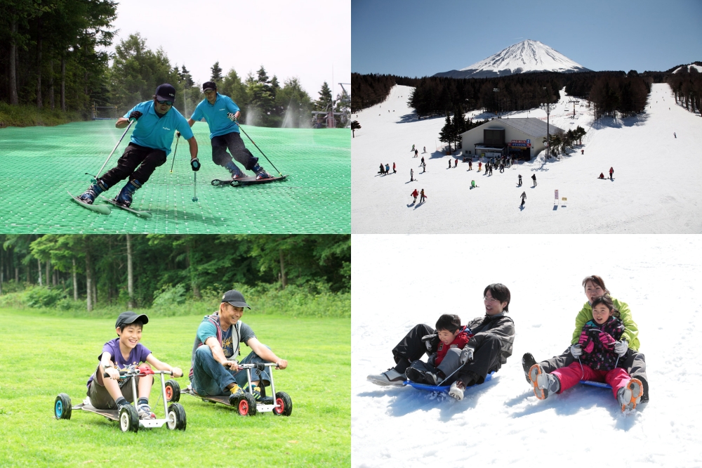 富士山のゲレンデ「ふじてん」には、サマーゲレンデやマウンテンバイク、ポッカールなど子どもから大人まで楽しめるアウトドアスポーツがたくさん!サマーゲレンデは、最新のカービングマットを使用しているため、夏でも雪上に近い感覚でスキーやスノーボードが楽しめますよ!